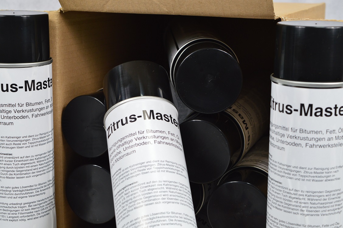 Zitrus-Master ist ein Reinigungsmittel für Bitumen, Fett, Öl sowie ölhaltige Verkrustungen an Motor, Getriebe, Unterboden, Fahrwerksteilen und Motorraum!