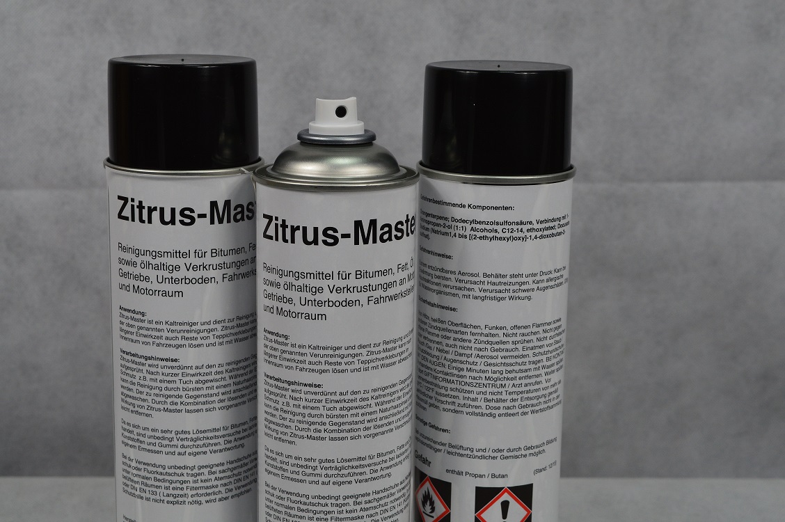Zitrus-Master ist ein Kaltreiniger und dient zur Reinigung und Entfernung der vorgenannten Verunreinigungen.