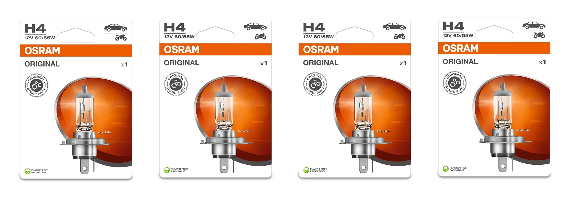 4 Stück Osram 64193-1BL H4 Halogen 12V 60/55W P43t