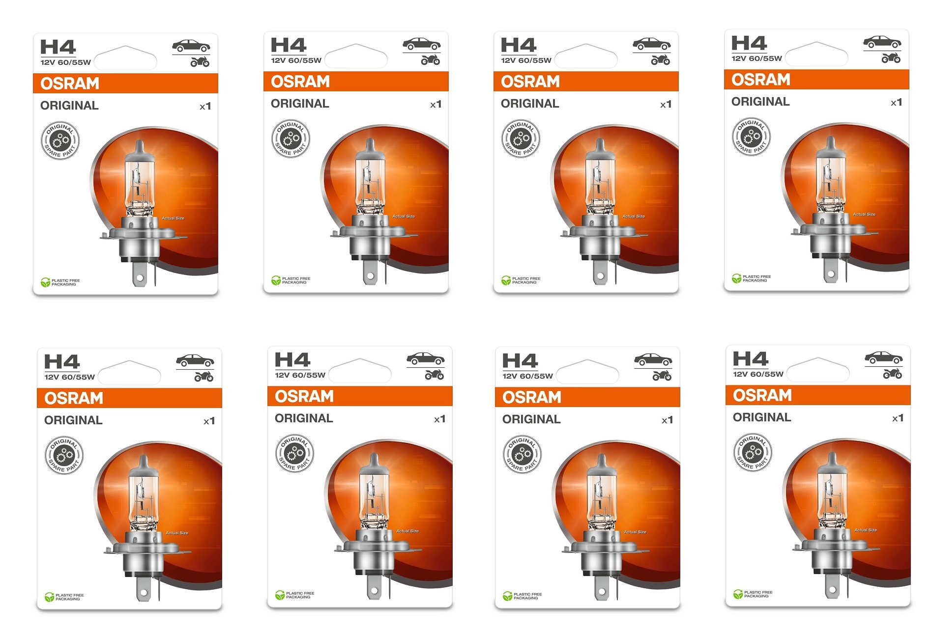 8 Stück Osram 64193-1BL H4 Halogen 12V 60/55W P43t