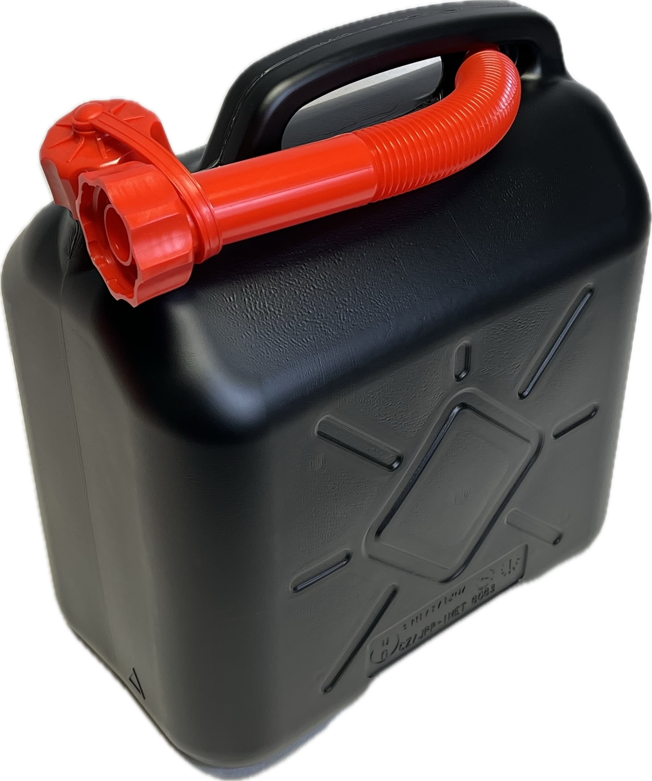 Benzinkanister 10 Liter schwarz mit UN Zulassung mit Ausgiessrohr und Deckel