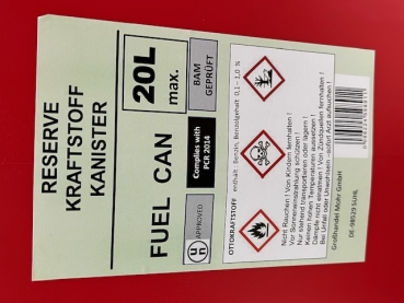 Benzinkanister 20 Liter rot mit UN Zulassung mit Ausgiessrohr und Deckel